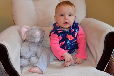 So no fancy photos this month. Good thing was Chris took off today for her birthday so he helped distract her as best as he could.