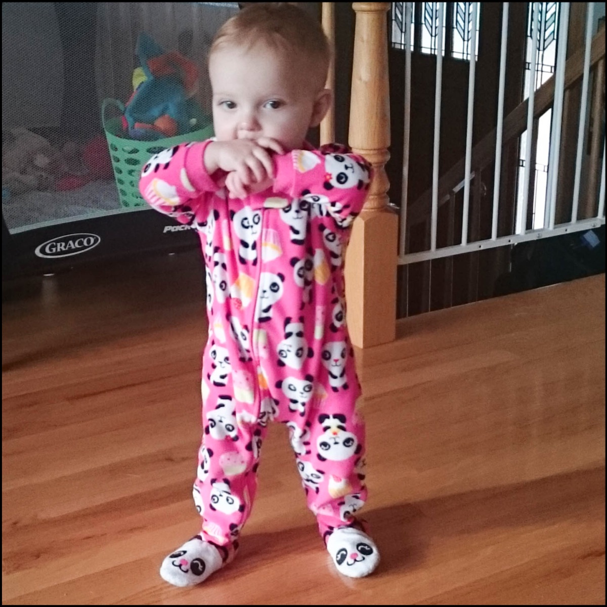 Teeth: She has 4 now! She cut her left upper front tooth right after turning 11 months, and her second upper one two weeks later. Teething hasn’t been too bad this month. I only used her gum-o-mile a few times at the start of the month, but nothing else except teething rings. Girl likes to chew on everything now though. Especially her board books. Like, she bites chunks out of them if I’m not paying attention. Maybe she’s really developing a *taste* for her books?
