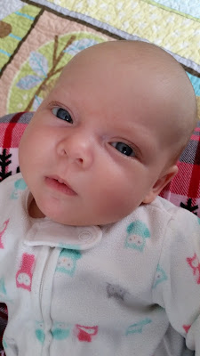 Olivia is two months old. It seems like her first month was spent with her eyes closed, not doing much except sharting and eating.