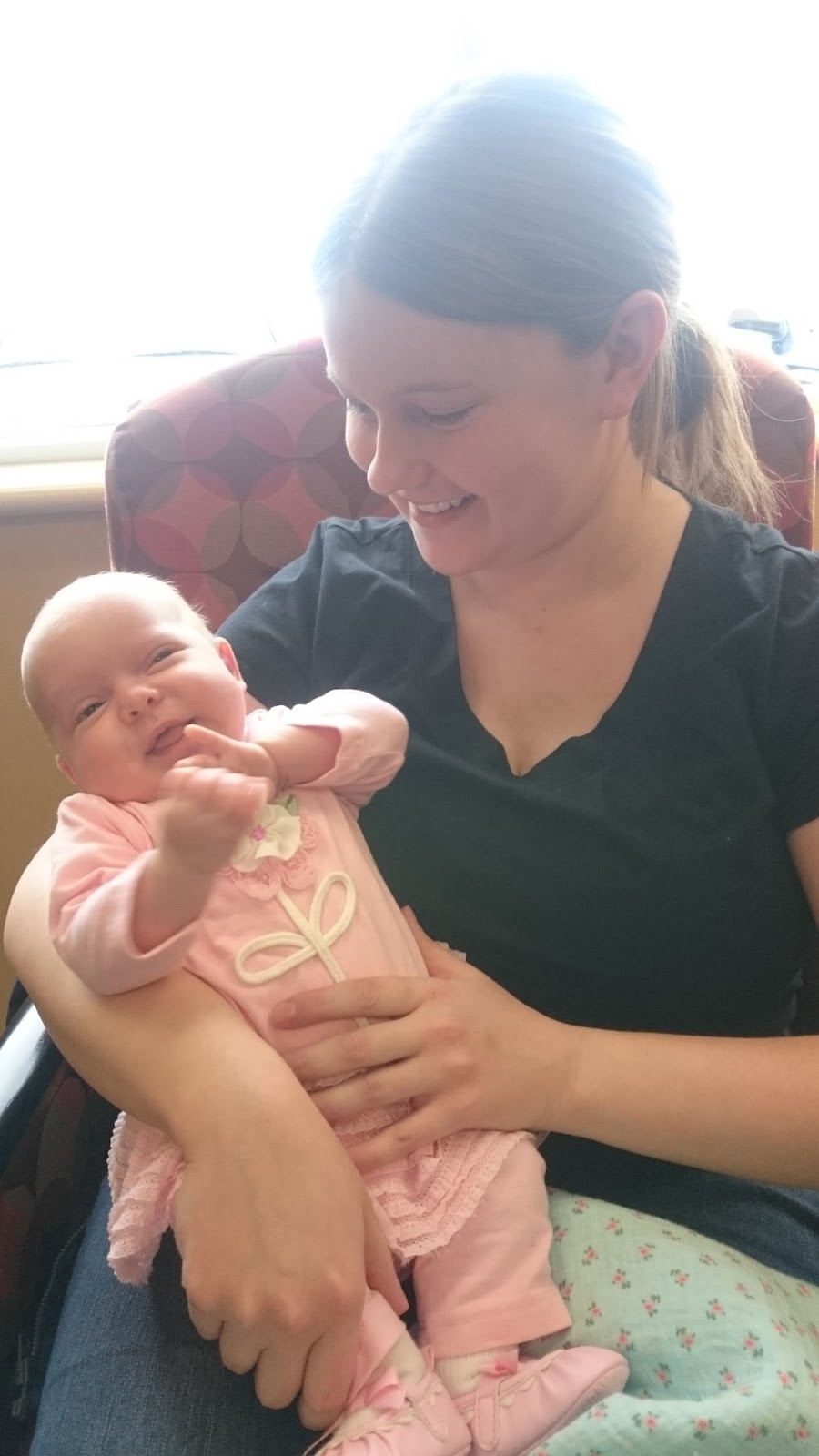 But she did get to wear her outfit Chris picked out for her that was meant as her hospital going home outfit, but she was too teeny at the time to fit into it. Isn’t she totally adorable?? Don’t mind the darkness under my eyes, or the fact that I actually don’t remember if I showered that morning or even brushed my teeth.