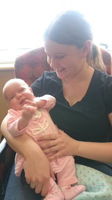 Too cute!!! I sleep with Bowen for half the night in the recliner so that I, selfishly, can get some decent sleep too. Not sure if he'll ever sleep in his crib at this point! He sleeps in the swing for a few hours a night also. Since he has started daycare I want to hold him even more at night rather than putting him down to sleep, again not helping him sleep on his own but whatev. She is precious!!!