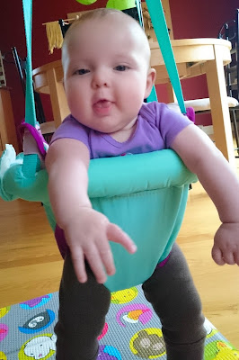 Sleeping: Two days after she turned 5 months, she put herself to sleep in the rock n play when I put her down to sleep. She’s slowly (slowly) learning how to self-soothe. Still is waking in the evening 1-2 times, but at 5.5 months, she had an 8 night stretch of staying asleep until after we went to bed and some nights she put herself to sleep. However, since then, it’s been a hit or a miss. She wakes initially between 12am and 2am and then again around 4:30, though again, sometimes she will go until 3 or 4 in the morning. Her morning naps are great. She’ll easily sleep 2-3 hours as long as she’s in her swing. Of course now it’s way more fun to swing sideways.