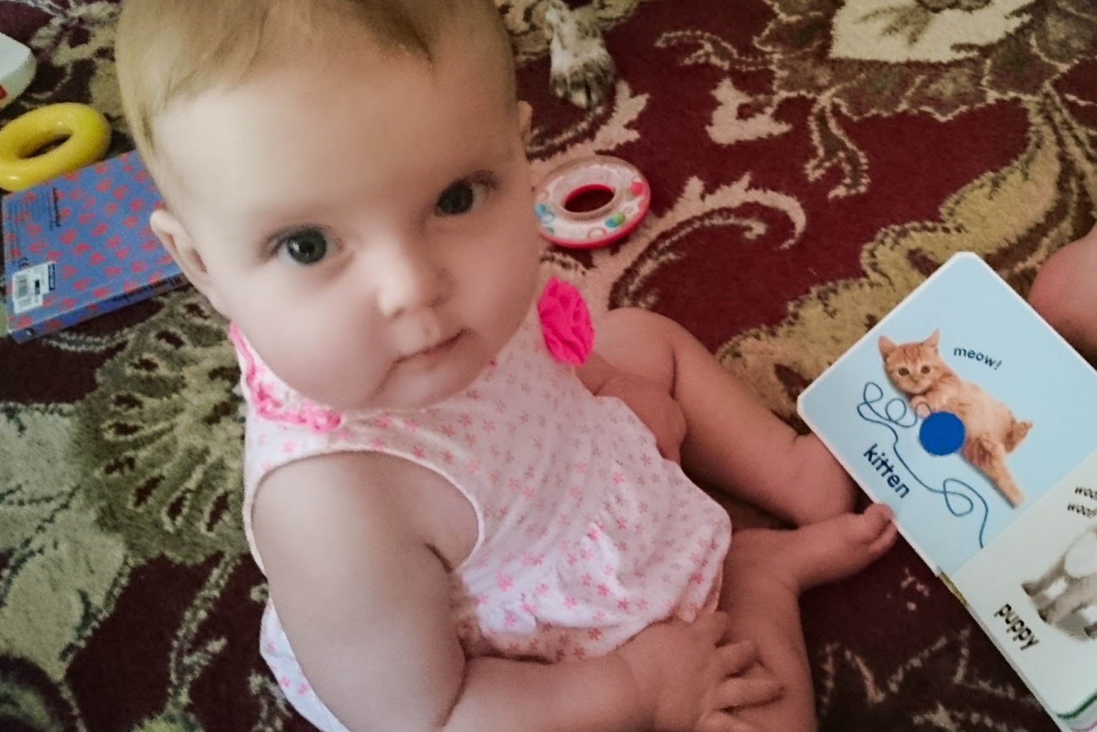 She’s also into those square books that show one picture with the word below. I got one from her pediatrician visit and it’s all just pictures of animals and she. loves. it. Probably because I try (badly) to make the noises. Have you ever tried to imitate an elephant? I try to read her other more stimulating books like Llama Llama Red Pajama or Outlander and she’s all like, see ya!